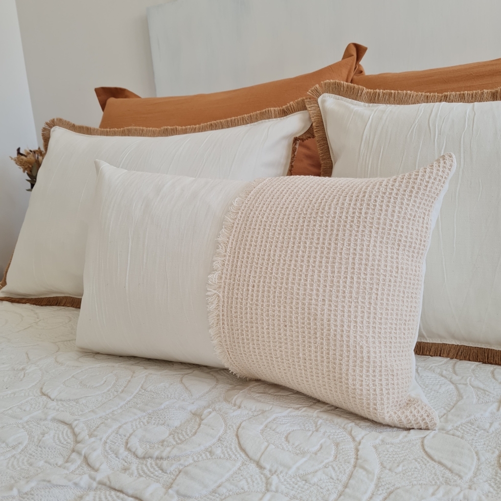 Almohadón Atenas, Waffle combinado con tusor en color Crudo