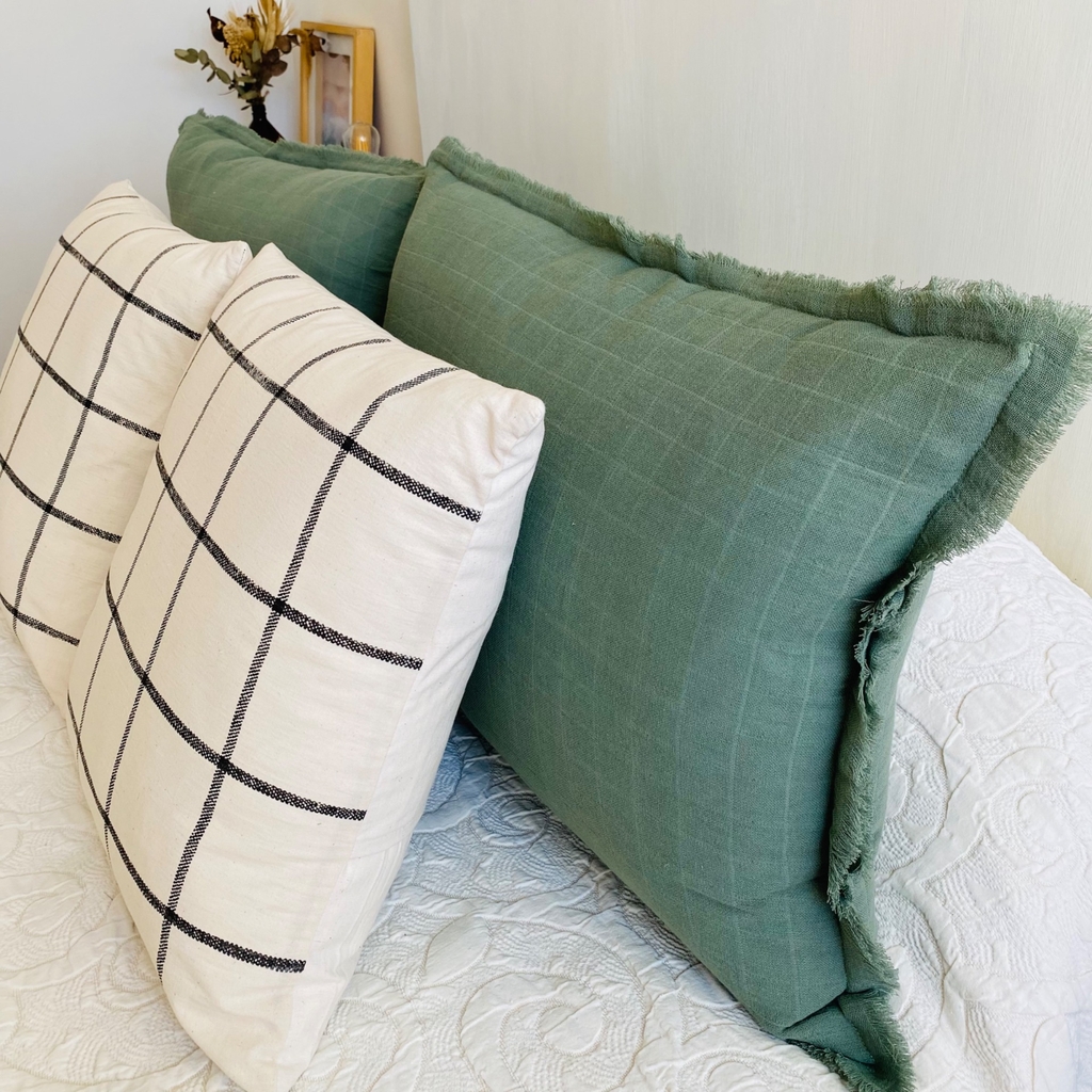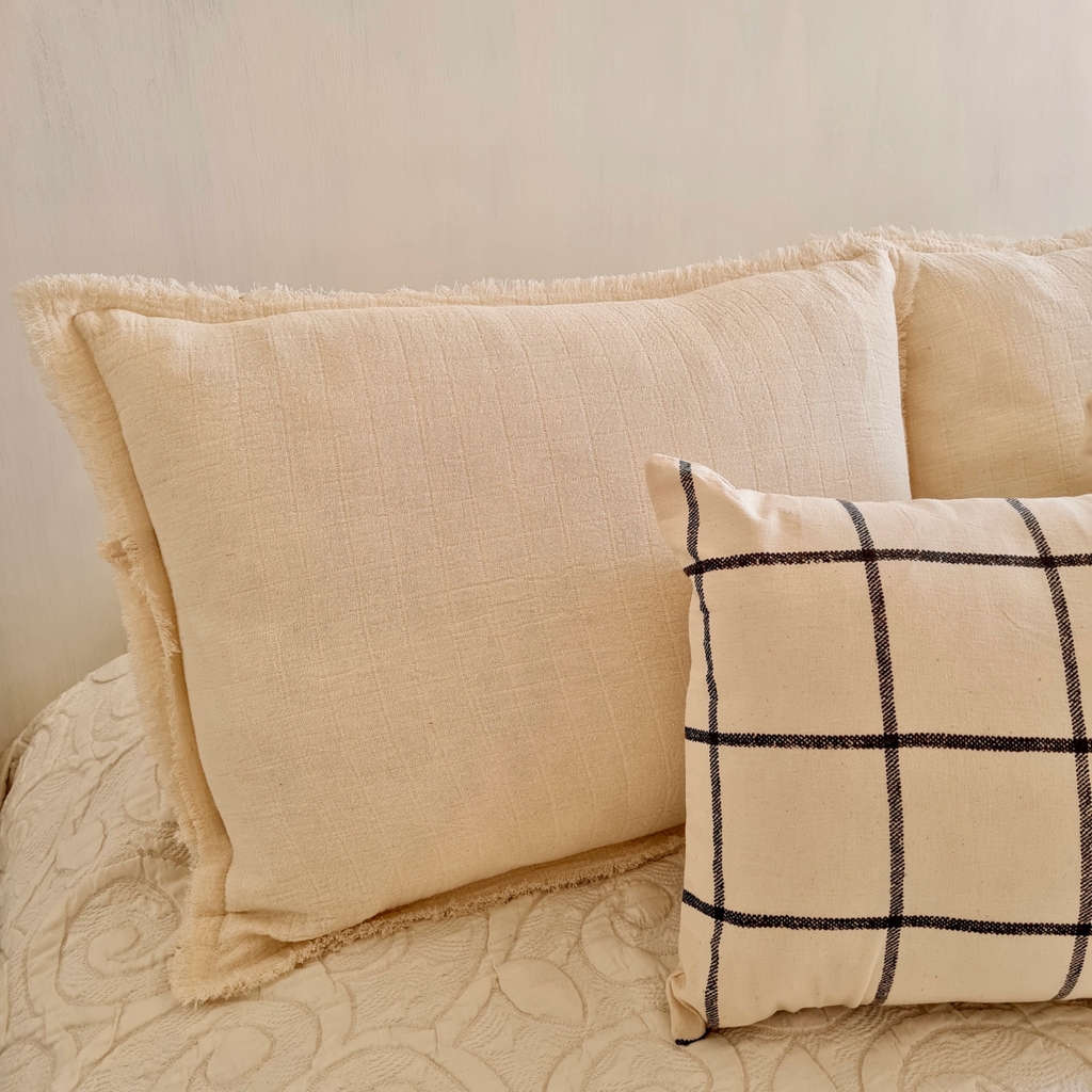 Set de DOS almohadones lisos confeccionados en Gasa Doble Tejido, con extremos desflecados.